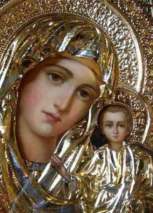 Η μορφή της Παναγίας ήταν ζωντανή. Το βρέφος Ιησούς που κρατούσε στα χέρια της πήρε και αυτό ζωή. Κίνησε το δεξί του χέρι και έκλεισε το στόμα της αγίας Μητέρας του, στρέφοντας προς αυτήν το φωτεινό πρόσωπό του.